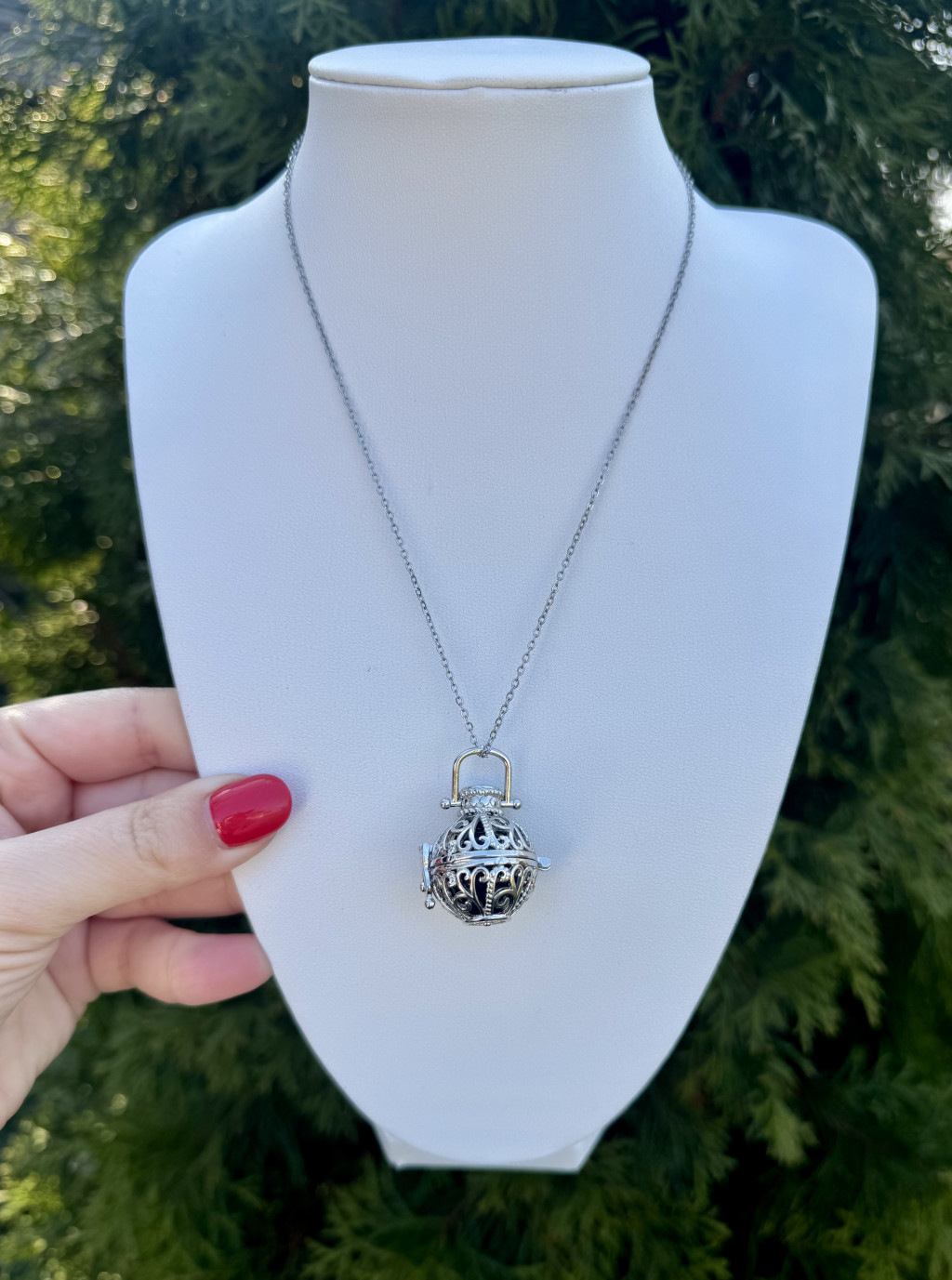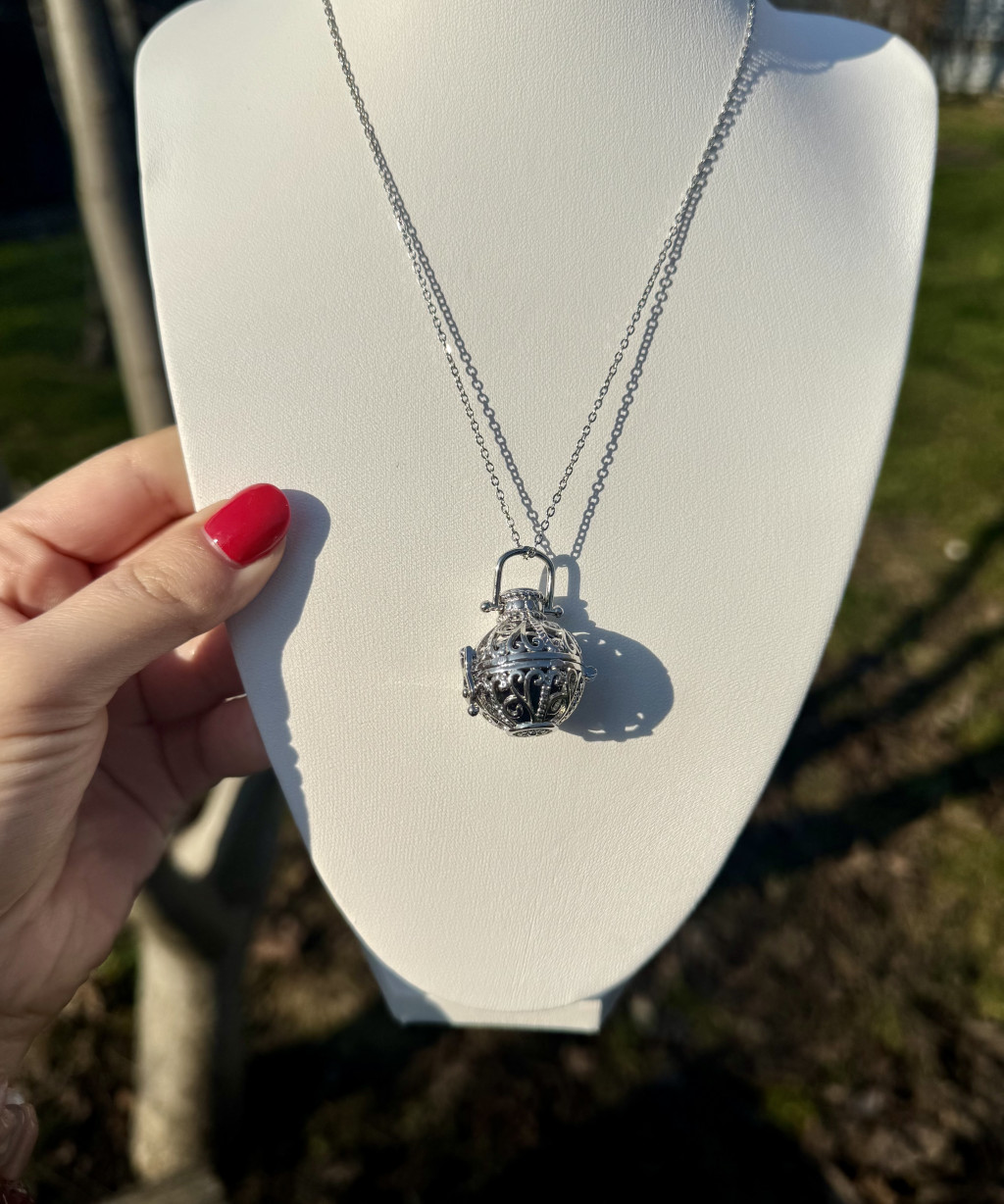 Egy különleges spirituális ékszer, amely a védelem, a belső vezetés és a láthatatlan támogatás szimbóluma. Az angyalhívó hagyománya ősi kultúrákhoz nyúlik vissza, ahol úgy tartották, hogy a medál finom csilingelő hangja hívja és emlékezteti a védelmező angyalokat arra, hogy a viselője mellett legyenek. Ez a gyengéd hang sokak számára megnyugtató, segít lelassulni a rohanó mindennapokban, és emlékeztet arra, hogy a világban nemcsak a látható erők léteznek. Az angyalhívó gyakran a szív közelében helyezkedik el, így minden mozdulatnál finoman megszólalhat, mintha egy halk jelzés lenne a védelem és a jelenlét energiájáról. A medálban található obszidián gyöngy az egyik legerősebb védelmező ásványként ismert, amely segíthet elnyelni és átalakítani a negatív energiákat. Energiája támogatja a belső erő megerősödését, az önvédelem kialakítását és a tudatos jelenlétet. Az obszidiánt sokan az igazság kövének is nevezik, mert segíthet szembenézni a belső mintákkal és tisztábban látni a helyzeteket. Az angyalhívó és az obszidián kombinációja különleges egyensúlyt teremt a védelem és a spirituális kapcsolódás között. Ez az ékszer nemcsak egy szép kiegészítő, hanem egy finom energetikai talizmán is lehet, amely emlékeztet a belső biztonságra és a spirituális támogatás jelenlétére. Sokan választják ezt a medált olyan időszakokban, amikor több védelemre, lelki erőre vagy útmutatásra van szükségük. A nemesacél lánc tartós, időtálló és nem színeződik el, így hosszú ideig megőrzi elegáns megjelenését. Ez az angyalhívó medál egyszerre hordozza a védelem, a hit, a belső nyugalom és a láthatatlan segítő erők energiáját.