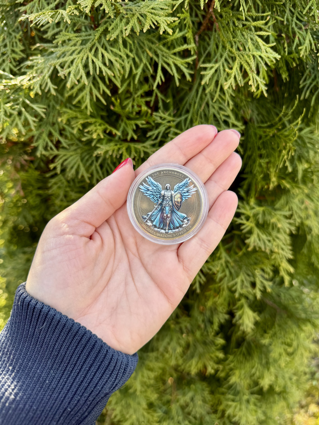 Egy különleges, spirituális védelemmel és erővel feltöltött érme, amely a belső stabilitást és a tiszta határokat támogatja a mindennapokban. Mihály arkangyal a mennyei seregek vezetője, a fény harcosa, aki segít levágni a félelmeket, az energetikai kötéseket és a láthatatlan terheket az életedből. Ez az érme emlékeztet arra, hogy jogod van megvédeni magad, kiállni önmagadért és tiszta térben létezni. Tarthatod a pénztárcádban, az oltárodon vagy akár a táskádban, zsebedben, hogy nap, mint nap érezd a támogatását. Különösen ajánlott akkor, amikor változáson mész keresztül, lezársz egy életszakaszt, vagy erős energetikai védelemre van szükséged. Segíthet megerősíteni a döntéseidet, tisztábban látni a helyzeteket és bátrabban lépni előre. Az érme a belső erőt, az igazságot és a rend energiáját hordozza. Támogatást ad konfliktusok idején, és segít megőrizni a lelki egyensúlyt nehezebb időszakokban is. Spirituális munkához, meditációhoz és imához is kiváló kísérő. Ajándéknak is tökéletes azok számára, akiknek extra védelemre, erőre vagy útmutatásra van szükségük. Tudatos használattal az érme erősíti az aurát és segít elengedni a félelmen alapuló működést. Ha szeretnél határozottabban, tisztábban és védettebben haladni az utadon, Mihály arkangyal energiája erős támaszod lehet.