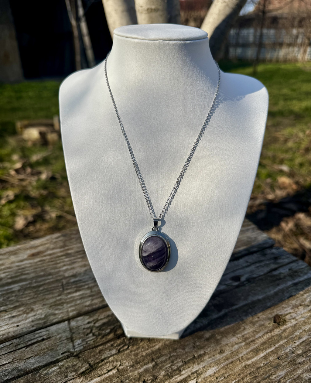 Az ametiszt medál a belső nyugalom, a spirituális tisztaság és az intuíció egyik legismertebb ásványát hordozza. Az ametisztet évszázadok óta a bölcsesség és a védelem kövének tartják, amely segíthet lecsendesíteni az elmét és harmonizálni a gondolatokat. Energiája támogatja a stressz oldását és segíthet megtalálni a belső egyensúlyt a mindennapok kihívásai között. Sokan úgy tartják, hogy az ametiszt erősíti az intuíciót és segít tisztábban érzékelni a belső megérzéseket. Gyakran kapcsolják a harmadik szem és a koronacsakra energiájához, így segíthet a spirituális tudatosság mélyítésében. Az ametiszt különösen hasznos lehet meditáció vagy relaxáció során, mert támogatja a mentális tisztaságot és a lelki békét. Finom lila színe a spiritualitás, a misztikum és a belső bölcsesség szimbóluma. A medál elegáns és időtálló megjelenése miatt tökéletes kiegészítő a mindennapokban és különleges alkalmakon is. A nemesacél lánc tartós, nem színeződik el, így hosszú időn keresztül megőrzi szépségét. Ez az ékszer nemcsak stílusos kiegészítő, hanem egy finom energetikai talizmán is lehet, amely támogatja a nyugalmat, az intuíciót és a belső harmóniát.