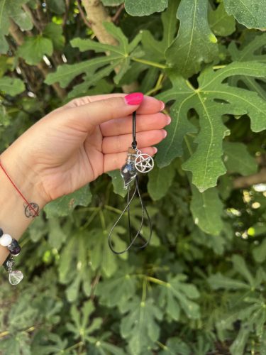 Ez a boszorkány nyaklánc a pentagram ősi szimbólumát és a fekete turmalin védelmező erejét egyesíti magában. A pentagram a mágia, az elemek (föld, víz, tűz, levegő, szellem) és a kozmikus harmónia jelképe, amely a boszorkányok legerősebb védelmi szimbóluma. A medál belsejében található turmalin por felerősíti a nyaklánc energiáját: elnyeli a negatív rezgéseket, távol tartja a rossz szándékot, és erőteljes energetikai pajzsot hoz létre viselője körül. Ez a különleges ékszer nemcsak dísz, hanem amulett is, amely támogatja a spirituális fejlődést és a belső erőt. Használhatod mindennapokban a védelem erősítésére, rituálékban energiáid fókuszálására, vagy egyszerűen, hogy közelebb kerülj a boszorkányos erődhöz. A turmalin por finom rezgései a pentagrammal együtt segítenek lehorgonyozni, tisztán látni, és bátran haladni az utadon. Ez a nyaklánc igazi talizmán, amely egyszerre őriz, erősít és összekapcsol a mágia időtlen erejével.