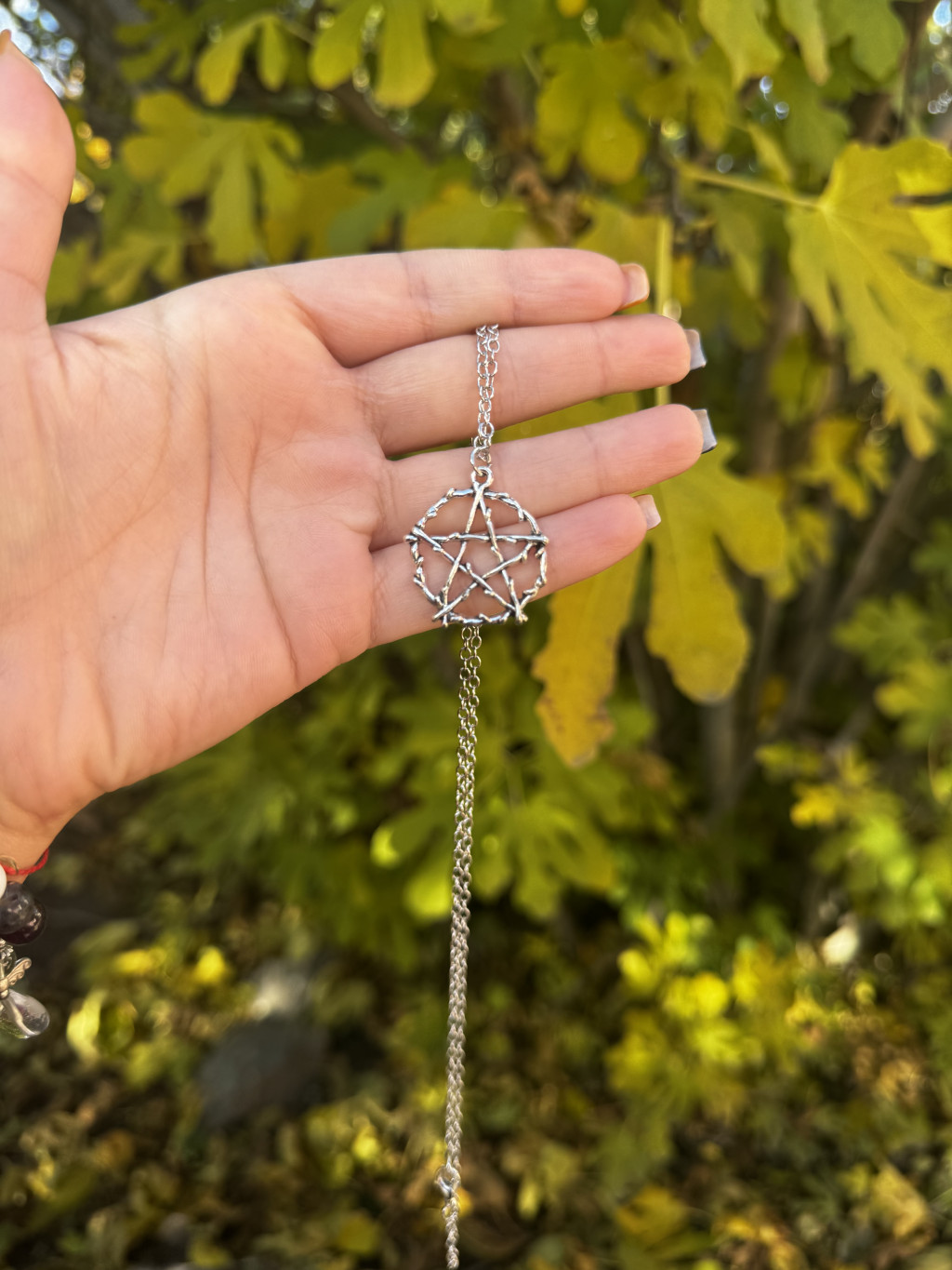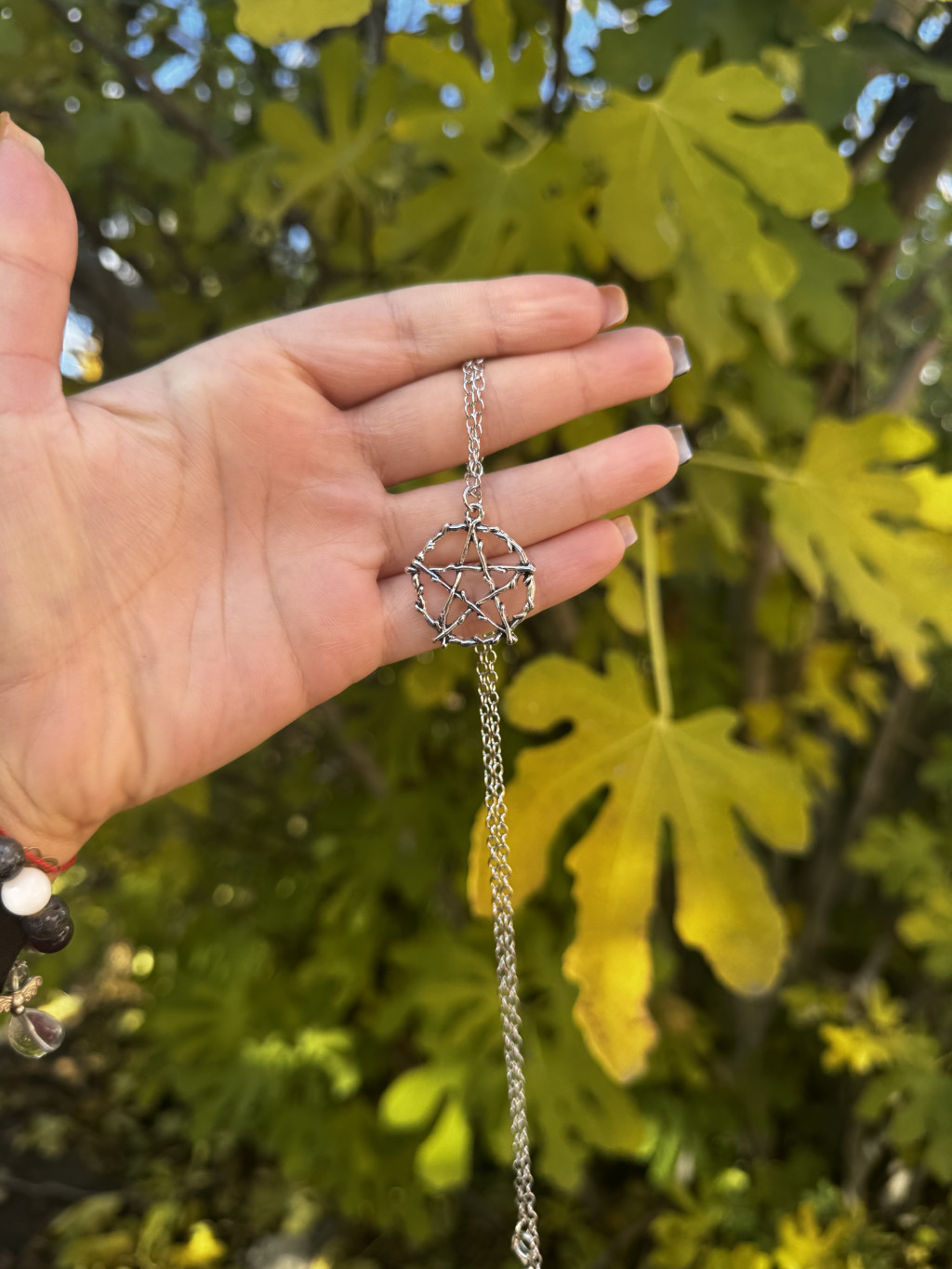 A pentagram az ősi védelem és egyensúly szimbóluma, amely a föld, levegő, tűz, víz és szellem elemeinek harmóniáját jelképezi. A boszorkányhagyományokban a szent tér és a spirituális erő jelképe, amely összeköti a viselőjét a természet és az univerzum erőivel. A nemesacél anyag fényes, elegáns, és nem színeződik el, így a nyaklánc hosszú ideig megőrzi ragyogását. Minimalista, mégis mágikus megjelenése miatt nőies és erőt sugárzó ékszer egyszerre. Viselhető rituálék során, spirituális gyakorlatokhoz, vagy akár mindennapi talizmánként is. A pentagram segít megőrizni a belső középpontot, védelmet nyújt a negatív energiákkal szemben, és emlékeztet a személyes hatalomra. Letisztult formája diszkrét, mégis erőteljes üzenetet hordoz: az isteni és emberi erők összhangját. Ez a nyaklánc a modern boszorkányok elegáns védelmező ékszere.