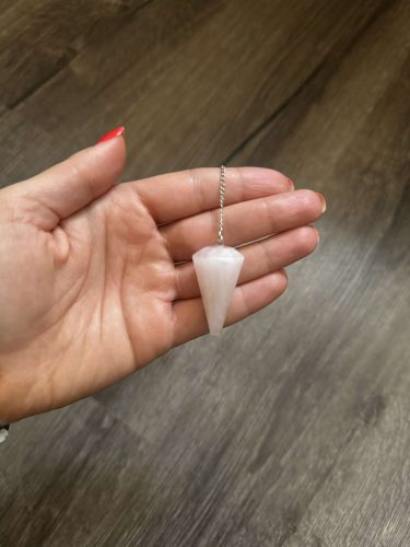 A rózsakvarc inga a szeretet, a harmónia és a gyógyulás energiáját sugározza. Segítségével könnyen ráhangolódhatsz belső érzéseidre, és tiszta választ kaphatsz kérdéseidre, hiszen mozgása a szíved és az univerzum rezgéseit tükrözi. A rózsakvarc a szívcsakra köve, amely gyengédséget, együttérzést és önszeretetet erősít. Használhatod meditációban, jóslásban vagy rituálékban, ha szeretnéd mélyíteni kapcsolataidat, gyógyítani érzelmi sebeidet, vagy megnyitni magad a szerelemre. Az inga energiája oldja a szorongást és a félelmeket, miközben békés, szeretetteljes aurát teremt körülötted. Spirituális munkában támogatja az önelfogadást és a megbocsátást, így segít közelebb kerülni valódi önmagadhoz. A rózsakvarc inga nemcsak válaszokat ad, hanem gyógyító rezgéseivel lágyan átöleli a szívedet. Ideális társ lehet mindennapi önismereti gyakorlataidhoz és spirituális utad megerősítéséhez.