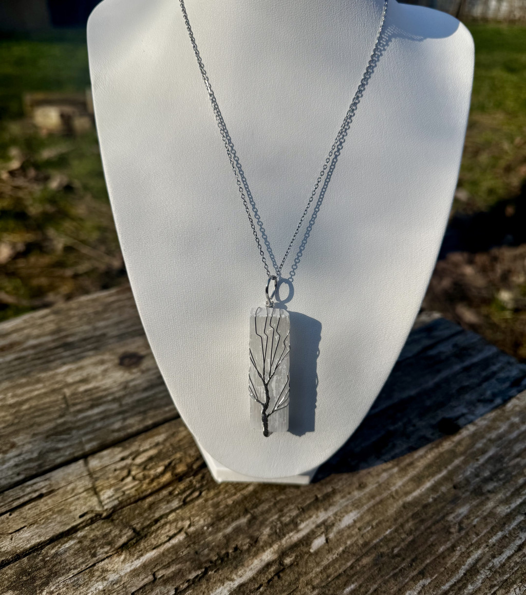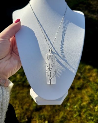 Ez a nemesacél nyakláncon viselhető szelenit medál a tisztaság, a fény és az energetikai megtisztulás egyik legerősebb ásványát hordozza. A szelenitet régóta a magasabb rezgések kövének tartják, amely segít megtisztítani az aurát, eloszlatni a negatív energiákat és harmonizálni a belső teret. Különösen ajánlott azoknak, akik érzékenyek a környezet energiáira, vagy szeretnék magukat spirituálisan védelem alatt tartani a mindennapokban. A medál finom, fehéren áttetsző fénye a hold energiáját idézi, ezért gyakran kapcsolják a női intuícióhoz, a belső bölcsességhez és a spirituális tisztánlátáshoz. Segíthet a mentális zaj lecsendesítésében, a stressz oldásában és a belső béke megteremtésében. Sokan meditáció során is használják, mert támogatja a magasabb tudatszintekhez való kapcsolódást és erősíti az intuíciót. A szelenit különlegessége, hogy nemcsak önmagát, hanem más ásványokat és tereket is képes energetikailag tisztítani. A nemesacél lánc tartós, időtálló és nem színeződik el, így a nyaklánc hosszú távon is megőrzi szépségét. Ez az ékszer egyszerre elegáns kiegészítő és energetikai talizmán, amely finoman emlékeztet a belső fényedre. Ideális választás mindazoknak, akik szeretnének több tisztaságot, nyugalmat és spirituális harmóniát meghívni az életükbe.