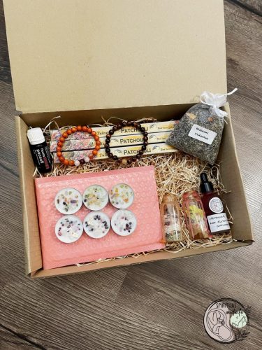 Gold Box tartalma ( 100%-os pacsuli olaj, szerelem zsákocska, 6 db-os varázsgyertya pakk, szerelem spell jar, 30 ml vágyfokozó illóolaj keverék )