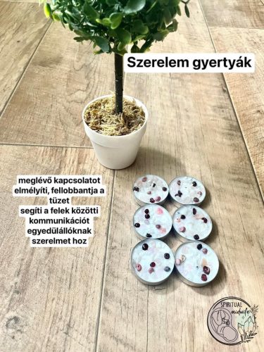 Szerelem gyertyák: egyedülállóknak szerelmet hoz. Ha vágysz valakire, aki elérhető számodra és a sors is úgy akarja, hogy mellette legyen a helyed, akkor segít a mielőbbi kapcsolódásban. Kapcsolatban élőknek elmélyíti a szerelmet. Segít újra fellobbantani a tüzet, egymásra hangolódni. Felpezsdíti a szexuális életet. Erősíti a bizalmat, segíti a kommunikációt, őszinteségre ösztönöz. Rendszeres használata védi a kapcsolatod.